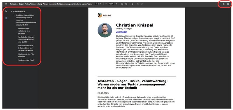 3. Ansicht und Download: Schau dir je nach Browser/Tool links in der Leiste die einzelnen Seiten an oder navigiere in die einzelnen Kapitel. Lade den Artikel oben links in der Ecke als PDF herunter oder drucke ihn aus.