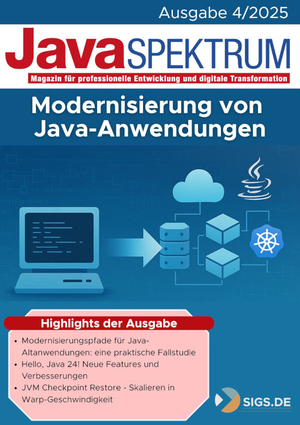 JavaSPEKTRUM ist das Praxismagazin für professionelle Softwarearchitekten und -entwickler, die mit der Java-Plattform arbeiten.